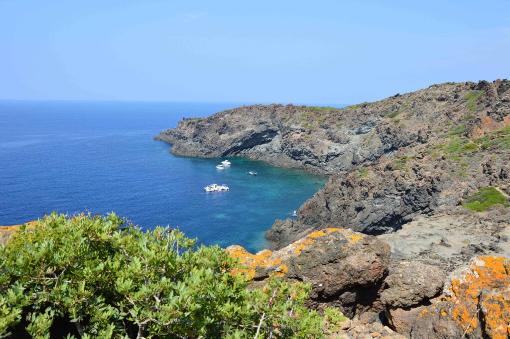 La Cala Cinque Denti ofrece uno de los paisajes más salvajes de la costa norte, una ensenada de aguas esmeralda protegida por acantilados que parecen tallados a mano. En el interior, la sorpresa es el Jardín Pantesco: una estructura circular de muros altos de piedra que protege a un único árbol de naranja del viento extremo, creando un microclima donde el aroma del azahar se concentra de forma casi mística.